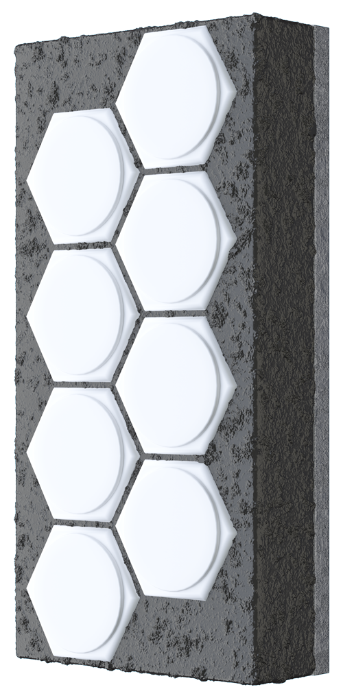 The alumina hexagonal ceramics of the Globalflex Hexagon Panel complement the epoxy compound to provide greater resistance to abrasion, wear, impact, and acidic chemical attacks.