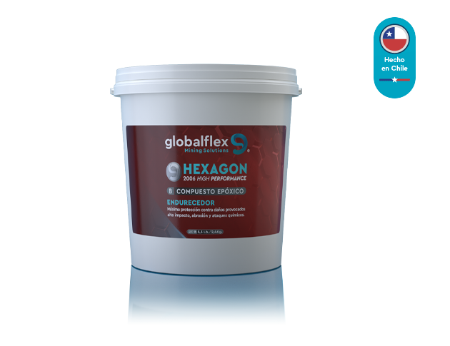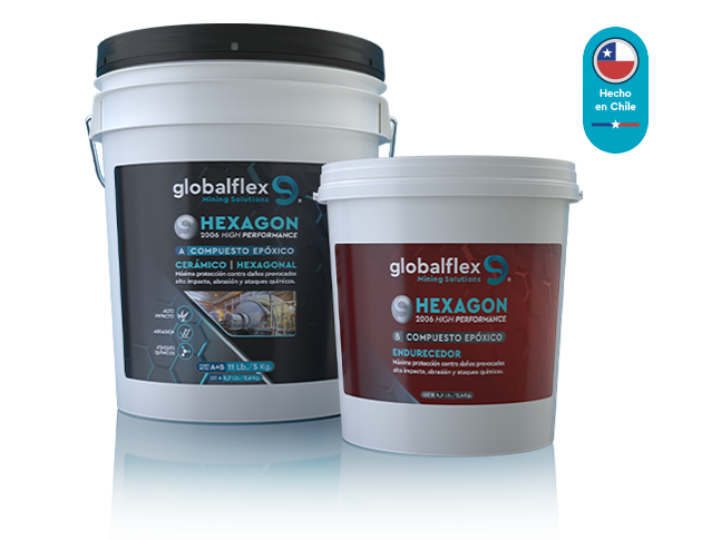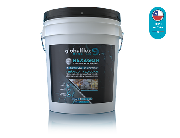 Globalflex® Hexagon 2006 High Performance Line is an epoxy compound designed for coating, repairing, and protecting against wear caused by high impact, abrasion, and acidic chemical attacks on equipment such as feed and discharge chutes, general ducts, elbows, and concrete surfaces.